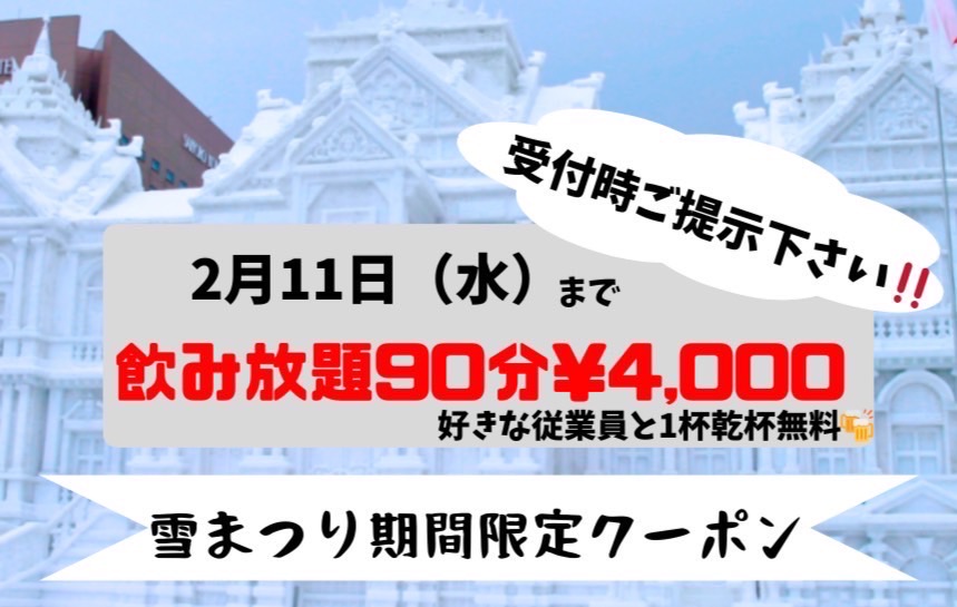 お食事付き飲み放題プランもご用意できますので、料金や詳細につきましては、電話もしくはメールにてお気軽にお問い合わせください。 -